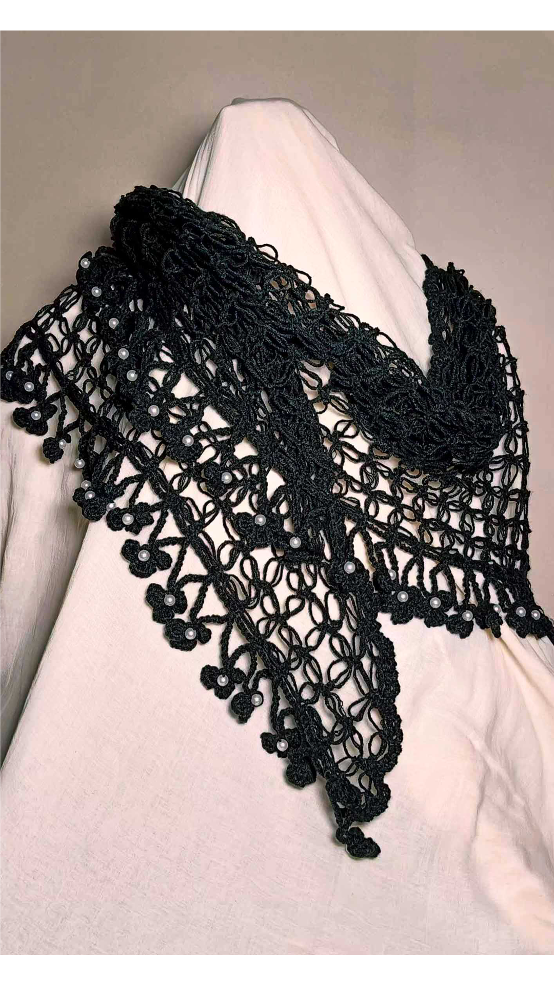 ক্রশের তৈরী উলের তিন কোন শাল, সাথে পুঁতি